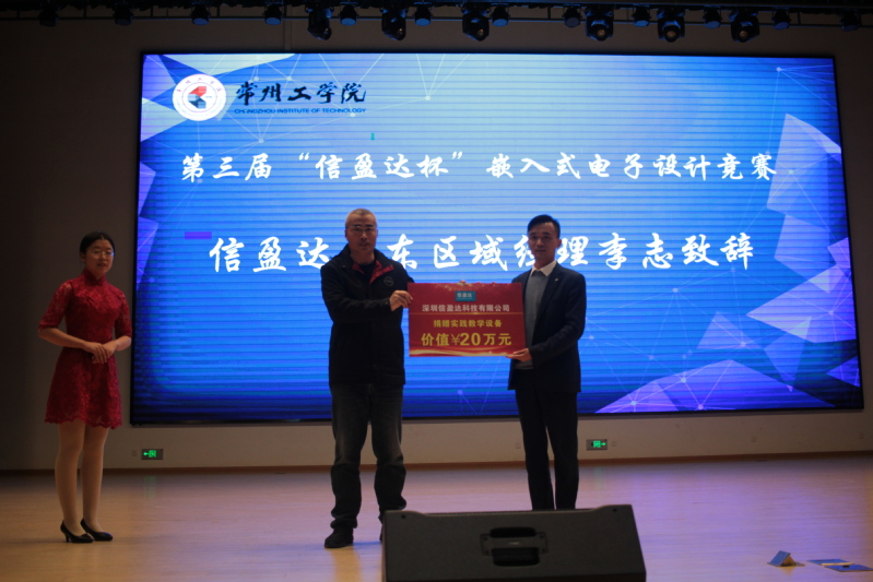 11月5号,“信盈达杯”嵌入式电子设计竞赛基金捐赠仪式在我校举行。副校长张兵、信盈达公司华东区域经理李志、技术总监吴成宇、电气信息工程学院院长毛国勇、学校教育发展基金会秘书长王文,以及我校相关职能部门、二级学院负责人、师生代