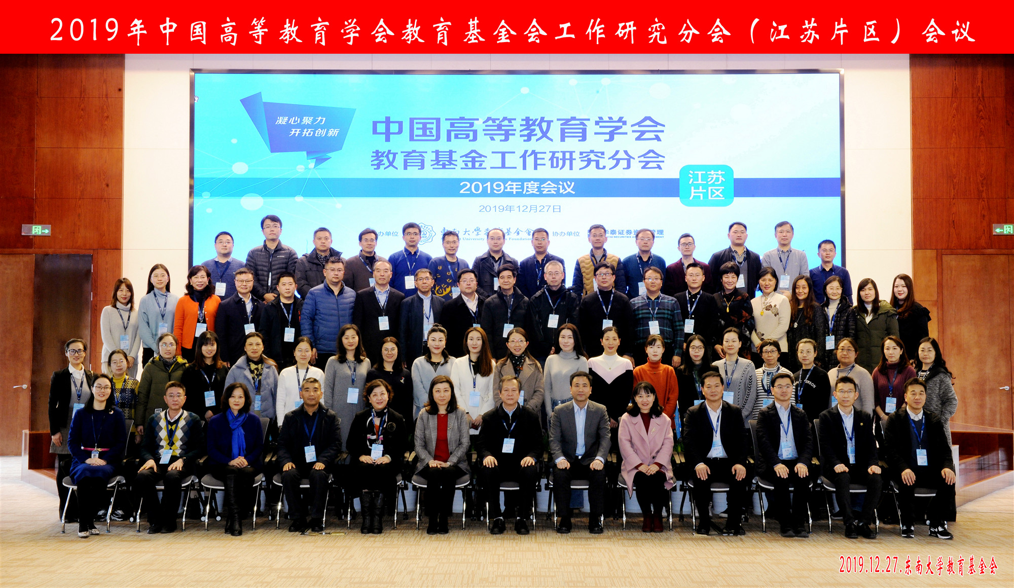2019年12月27日下午,由东南大学教育基金会主办,华泰证券资产管理有限公司协办的“2019年中国高等教育学会教育基金会工作研究分会(江苏片区)会议”在南京召开。本次会议有省内33所高校的68位高校基金会领导老师参加,我会