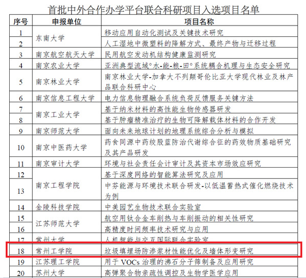 近日,江苏省教育厅公布了“首批中外合作办学平台联合科研项目”的评审结果。我校土木建筑工程学院申报的“垃圾填埋场防渗浆材性能优化及墙体形变研究”入选。