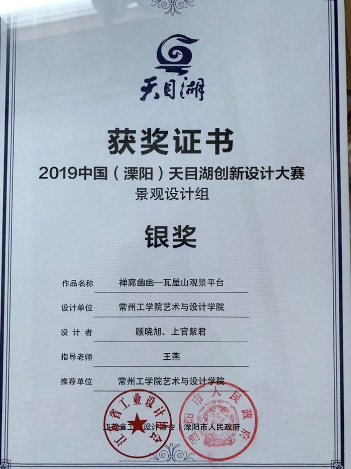 在日前举行的2019中国(溧阳)天目湖创新设计大赛上,我校艺术与设计学院在景观设计组别中共获得3项银奖、3项铜奖、6项优秀奖。