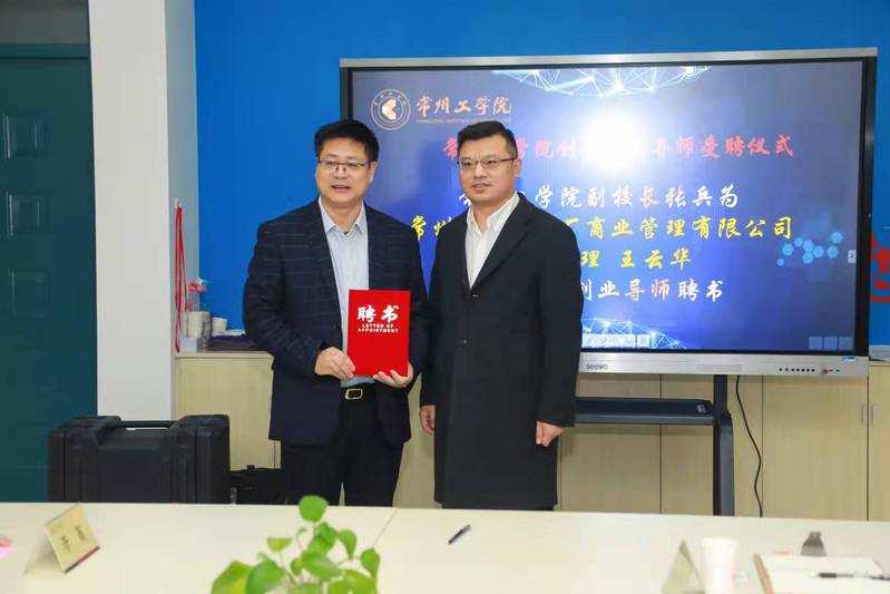 副校长张兵为江苏美利隆文化传媒有限公司董事长、常州典雅工场商业管理有限公司副总经理王云华颁发创新创业校外导师聘书,对他们的捐赠表示衷心感谢。他强调,培养杰出的应用型人才是学校转型升级的一个关键点,也是创新创业教育义不容辞的责任。他期望通过校企深度合作提高教师教研水平,提升学生实操能力,加强在实验实训建设方面的密切合作,全面推进产教研深度融合,更好地满足企业发展需求,最终实现双方共赢。他表示,我们将立足常州独特的区位优势和创新创业文化,携手促进苏南地区经济社会的发展。