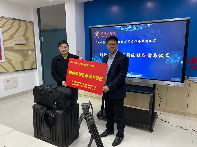 11月27日下午,创新创业学院与常州典雅工场商业管理有限公司战略合作签约暨设备捐赠仪式举行。双方签订战略合作框架协议,常州典雅工场商业管理有限公司、江苏美利隆文化传媒有限公司向创新创业学院捐赠影像机、三脚架、导播切换台等影像实习设备,用于大学生创业实践。