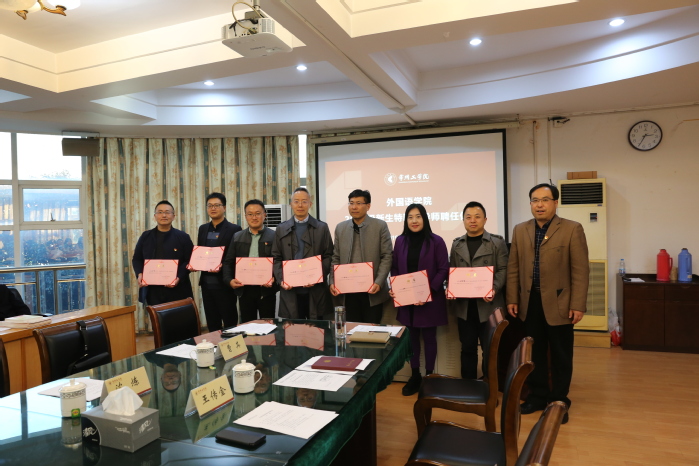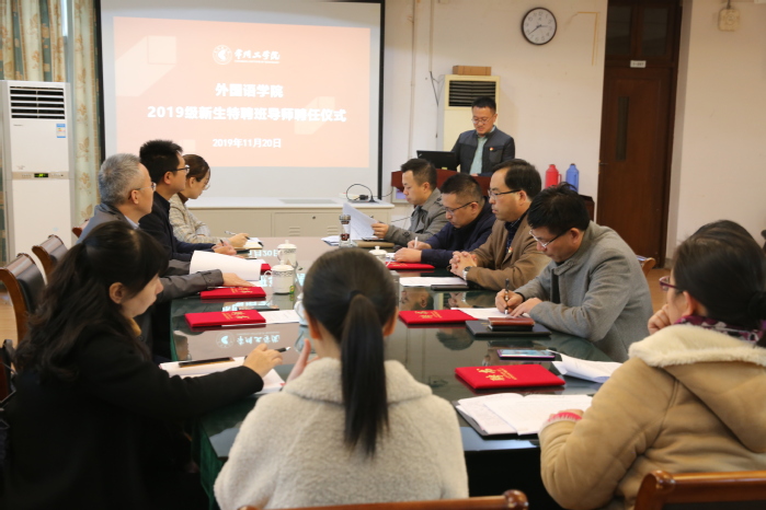 11月20日,外国语学院聘任9位新生班特聘班导师,并邀请副校长王传金为他们颁发聘书。