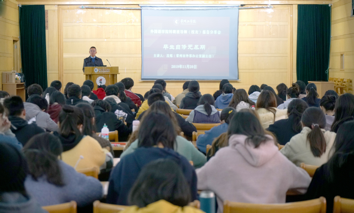 会后,特聘班导师、班主任与学生干部重点就下一步班级工作开展做好谋划交流。特聘班导师沈炼为2019级全体新生作题为《毕生自修无尽期》专题报告,让同学们充分了解了英语学习和语言作为沟通工具的重要性,时刻牢记:无论何时何地从事任何工作,拥有工匠精神、踏实认真,不断提升自我、拓展自我,才能走向更美好的未来。