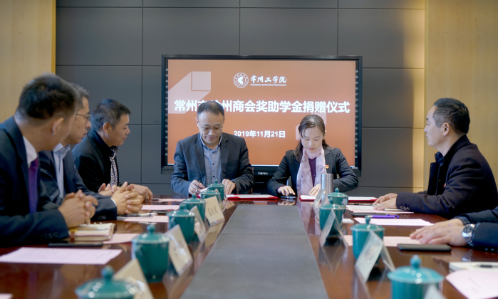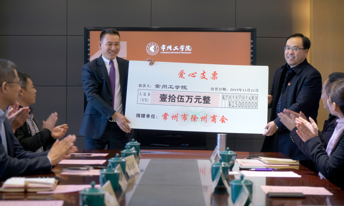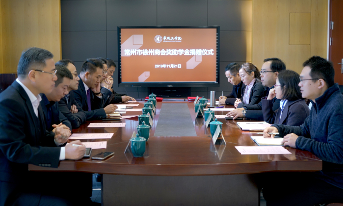11月21日上午,常州市徐州商会向我校学子捐赠奖助学金。副校长王传金代表学校接受捐赠,并向商会会长温勇颁发捐赠证书。副会长魏建刚和学生工作部(处)处长吕莹璐分别代表商会和学校签署捐赠协议。