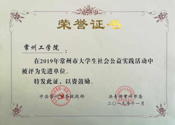 6月至11月,共青团常州市委联合中共常州市委统战部开展主题为“青春心向党 建功新时代”的常州市大学生社会公益实践活动。