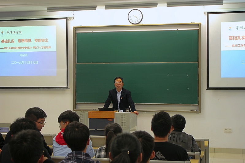 周全法聚焦“基础扎实 素质精良 技能突出”,从现代职教体系的改革与发展角度告诉学生“为何能进常工院”,从学校对应用化学专业3+4专门人才的培养目标和要求来指导学生“如何度过常工院”,从考研就业为方向引导学生制定“常工后人生规划”,鼓励学生坚定拼搏奋斗的意志,端正学习态度,努力攀登自己的人生高峰。同学们表示,班课发人深省,激励人心,催人奋进。作为青年学生要肩负时代使命,不负师长教诲,努力实现理想。