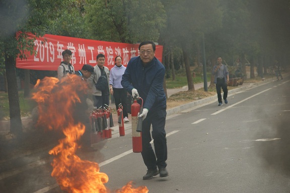 11月12日下午,我校举办2019年度消防技能比赛,设置男子组80米灭火器灭火与消防水带连接、女子组60米灭火器灭火与消防水带连接4个比赛项目,共有43支代表队190余名选手参赛。副校长朱锡芳与千余名师生共同观摩比赛。