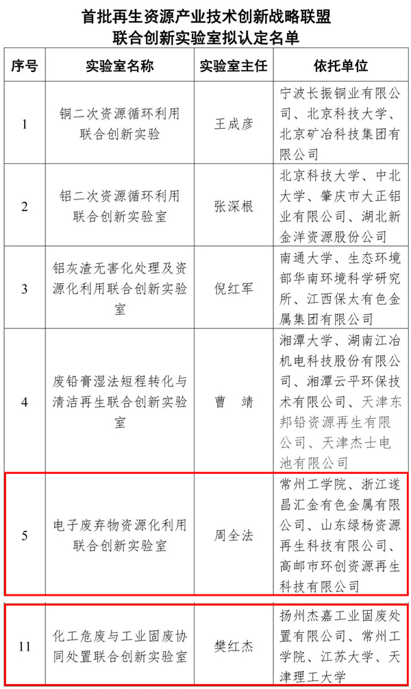 近日,中国再生资源产业技术创新战略联盟公布首批联合创新实验室拟认定名单,我校电子废弃物资源化利用联合创新实验室、化工危废与工业固废协同处置联合创新实验室均榜上有名。