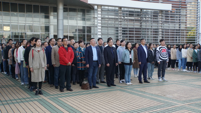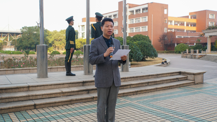 根据校党委“不忘初心、牢记使命”主题教育部署安排,11月11日早,师范学院、人文学院、艺术与设计学院、外国语学院、离退休工作办公室、图书馆、后勤管理处、体育教学部师生党员和学生代表参加升国旗仪式。副校长王传金作为师范学院小学教育系教工党支部党员参加仪式。仪式由师范学院党委副书记周嘉禾主持。