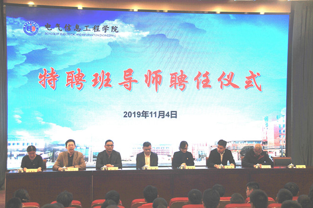 11月4日下午,电气信息工程学院举行特聘班导师聘任仪式。副校长张兵、教务处处长邹一琴、保卫处副处长徐磊、马克思主义学院第二教研室主任卢雷以及院党委书记李俊生、院长毛国勇、院党委副书记高静、副院长袁洪春、张燕红等9人被聘为2019级新生特聘班导师。