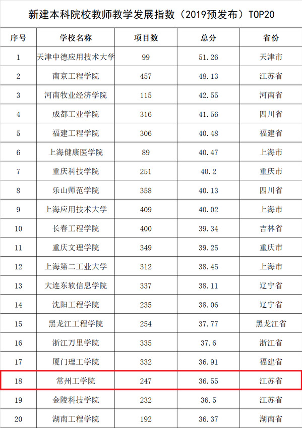 11月1日,中国高等教育学会在第54届中国高等教育博览会上预发布了我国首个新建本科院校教师教学发展指数。在进入指数覆盖的639所新建本科院校中,我校以36.55的总分位列第18位。