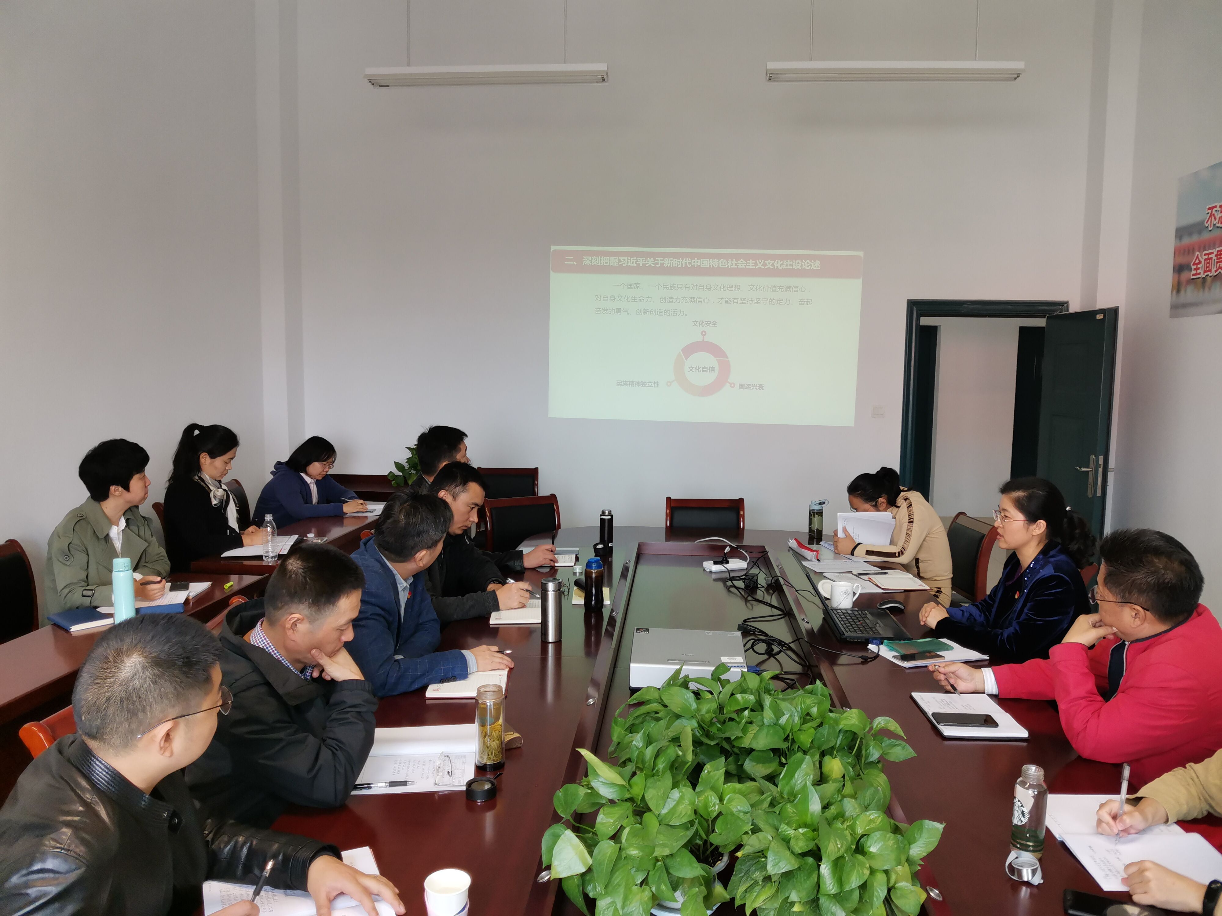 11月1日下午,校党委常委、党委宣传部部长王萍霞以《以文化人、以文育人,推进应用型大学文化建设》为题,为马克思主义学院全体党员和老师讲了一堂主题教育专题党课。校党委委员、马克思主义学院党总支书记、院长熊焱生主持报告会。