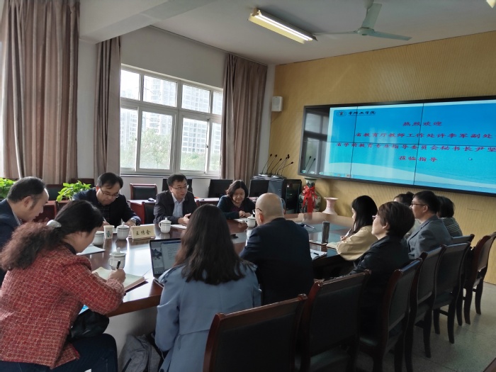 10月27日上午,江苏省教育厅教师工作处副处长许李军、省学前教育专业指导委员会秘书长尹坚勤一行来师范学院指导师范专业认证工作。副校长王传金出席会议。