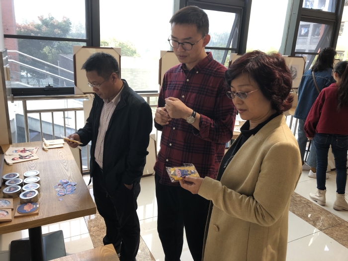 10月25至27日,艺术与设计学院美术系大运河主题文创展在辽河路校区菁园食堂成功举办。副校长汪群携常州市大运河文化带建设研究院办公室老师专程参观展览。大家对展览中有关大运河主题的创意开发、图案设计和衍生品称赞有加。大运河主题文创展由美术系苏卉君老师带领的学生团队负责设计、开发与制作。他们以大运河和常州方言为载体,结合常州本地特产,如萝卜干、大麻糕等,设计出丰富的既有文化艺术内涵,又接地气的创意之作,吸引了大批师生欣赏与购买。