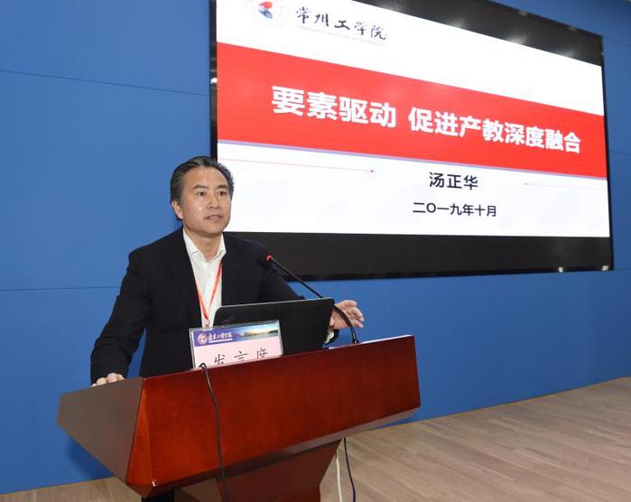 会上,汤正华作了题为《要素驱动 促进产教深度融合》的报告。报告从厘清专业布局,专业结构与产业结构融合;框定培养规格,专业标准与职业要求融合;整合教育资源,教学资源与产业资源融合;拓展大学文化,校园文化与企业文化融合;创新体制机制,学校体制与企业市场融合等5个维度展开,介绍了我校近年来在产教融合、校企合作方面的做法,分享了我校在开展产教融合工作上取得的成绩。报告受到参会专家和兄弟院校的高度评价,对提升我校影响力起到了积极的推动作用。