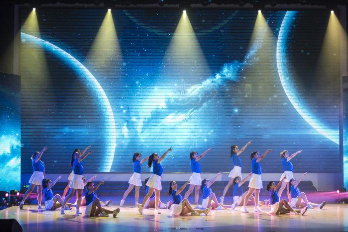 晚会在音诗画《粹化女校》中拉开帷幕。大学生艺术团舞蹈团带来的歌舞(舞蹈)《梦立方》《脊梁》《站在长征的起点》《碇步桥水清悠悠》《誓言铮铮》《我和我的祖国》,歌声悦耳、舞姿曼妙,一次次赢得现场观众热烈的掌声;大学生艺术团器乐团带来的民族器乐表演《站在高岗上》,淋漓尽致彰显了民族文化的魅力;大学生艺术团曲艺团带来的舞台剧《青果巷少年》,带领新生身临“江南名士第一巷”之境,与瞿秋白、张太雷的少年情怀产生深刻共鸣;大学生艺术团合唱团带来的合唱《在希望的田野上》,唱出了青年大学生的青春梦想和对祖国的无限深情;阳湖剧社带来的小品《远离校园贷,青春不负债》,让大家在笑中思考怎样珍爱自身、珍爱青春;Elovers’街舞社街舞《最好的舞台》和留学生舞蹈《乌兹别克波利卡》的精彩表演,生动展示了青年的活力创意和浓郁的异域风情,燃爆现场,将晚会推上一个新的高潮。银话筒社和校学生会声情并茂的朗诵《榜样的力量》,进一步激励大家从被誉为“夜空中最亮的星”的榜样身上汲取前行力量,用激情和理想追梦,用奋斗和奉献圆梦,从而凝聚起推动“中国号”巨轮破浪前行的磅礴力量。