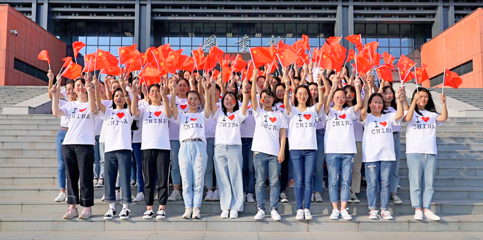 29日,大学生艺术团参与常州市妇女联合会主办的“祖国,听她说!——常州女性成长故事巡回演讲”活动主题视频录制和《我爱你,中国》等表演活动,她们身穿白色体恤,双手挥动着小红旗,在镜头面前大声向祖国母亲告白,表达拳拳爱国之心。