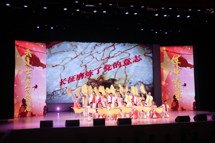 26日下午,大学生艺术团参与常州市武警支队举办的庆祝新中国成立70周年文艺汇演暨“好士官”“好军嫂”表彰活动。舞蹈《站在长征的起点》、歌舞《我和我的祖国》深深感染了在场观众。