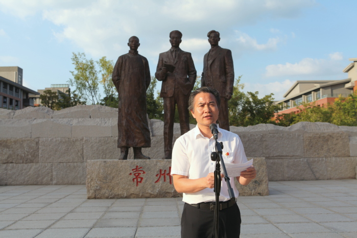 党旗党徽色鲜艳,重温誓词力铿锵。为扎实开展“不忘初心、牢记使命”主题教育,9月18日,“九一八”事变爆发88周年之际,我校近百名中层以上党员领导干部齐聚“常州三杰”群雕广场,集体重温入党誓词。