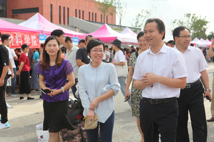 上午,校长汤正华,副校长朱海山、王传金、朱锡芳在相关职能部门负责人陪同下,先后前往辽河路校区、巫山路校区迎新现场。在一个个精心布置的报到点上,他们向新生及家长、迎新老师、志愿者亲切地致意问好,仔细听取有关情况并作工作指导。在外国语学院的新生报到现场,汤正华、王传金亲自为当天过生日的2位新生递上生日蛋糕,送上祝福寄语。