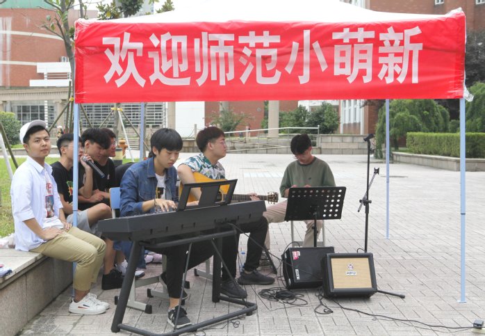 清晨,崭新的大巴和精神饱满的迎新志愿者们早早等候在火车站、高铁站和长途汽车站,为新生及家长提供热情周到的接送服务。为缓解行车的焦虑,帮助新生尽早适应新环境,校团委专门组织讲解志愿者随车介绍学校情况、讲解报到流程,并提供“拍立得”合影留念。迈入校园,迎新的氛围令人心潮澎湃,萌味十足的标语,充满仪式感的“和国旗同框的我们”签名墙、“幸福号高铁”心愿墙,“我和我的祖国”的青春快闪,精心设计的各类“网红”打卡点,带给了新生们温馨而有趣的大学初体验,厚植了新时代爱国主义情怀。