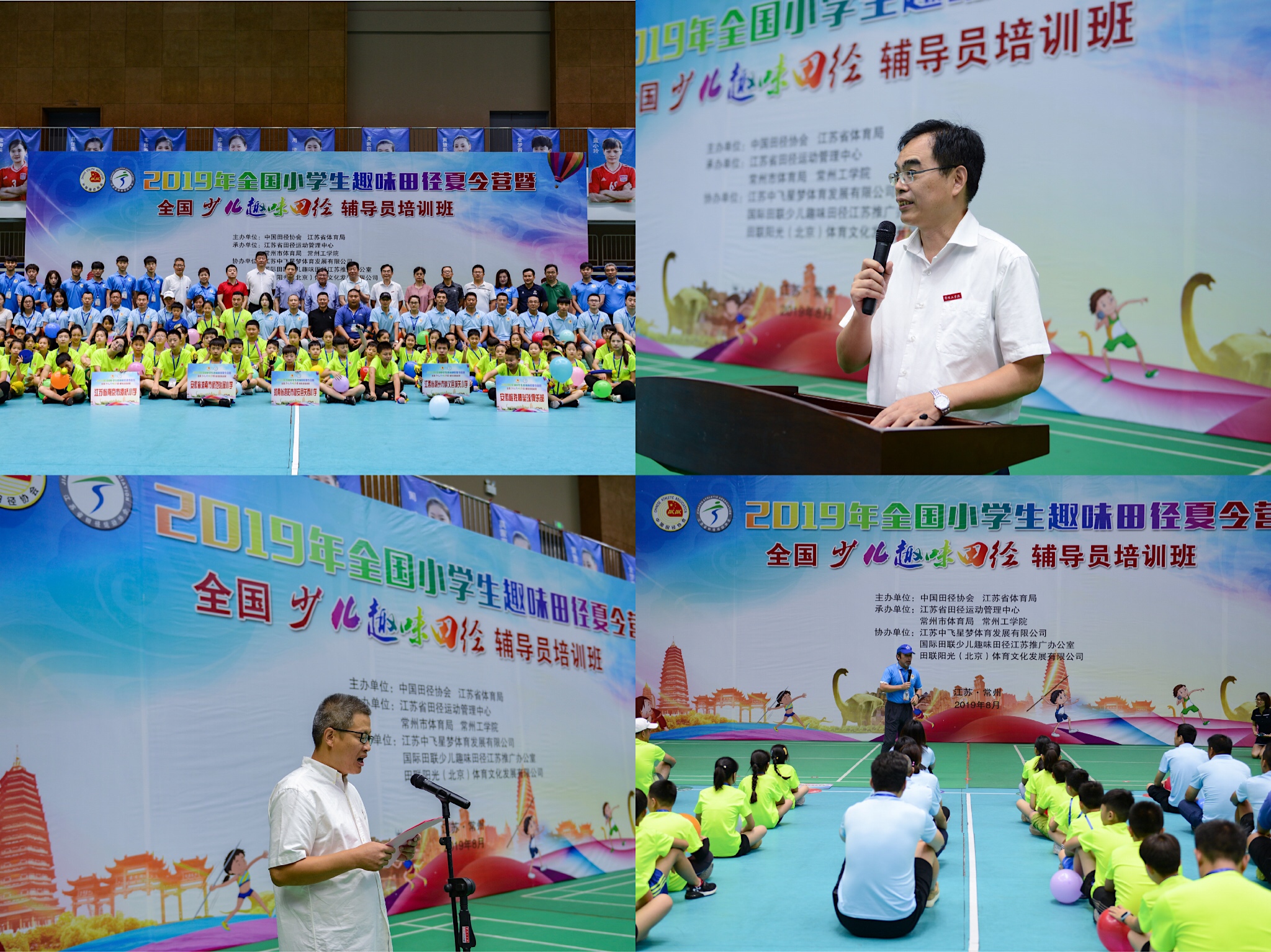 8月4日上午,由国家体育总局田管中心主办、江苏省体育局主办,江苏省田径运动管理中心、常州市体育局、我校承办的2019年全国小学生趣味田径夏令营暨全国少儿趣味田径辅导员培训班在我校开营。副校长朱海山、国家体育总局田径运动管理中心青少部部长付维波、江苏省体育局青少年体育处处长刘斌、江苏省体育局青少年训练与反兴奋剂管理中心主任蔡伟出席开营仪式。