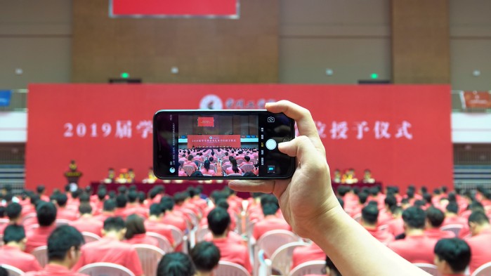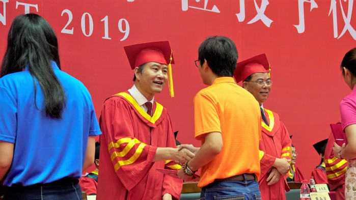 “不感恩这个时代,就成不了一名优秀的时代骄子。”“我希望大家每天都能抽出一点时间读经典著作,不断积累自身思想的深度,而不是把精力耗费在“英雄联盟”与“抖音”上;要想成就人生真正的“王者荣耀”,就多用批判的眼光去反思那些现成的结论。” ……6月21日上午,当校长汤正华向即将离“家”远行的2019届毕业生送上这样充满热度的赠言时,热烈的掌声不时充溢在辽河路校区体育馆、巫山路校区音乐厅内外。