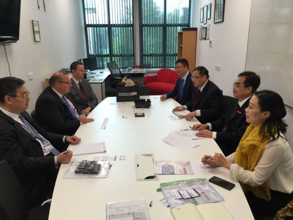 在英国赫特福德大学联合管理委员会会谈中,双方回顾了合作办学十多年的合作成果,对目前项目管理和运行中存在的问题进行了沟通和商议,并提出解决方案。同时,就师生交流、科研合作、高层次人才引进等进行深入交流和磋商,一致表示将在巩固已有合作项目基础上,进一步优化、深化合作项目,并在航空、计算机人工智能等领域寻求新的合作契机。