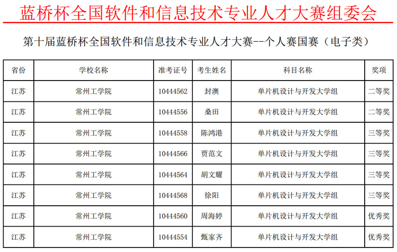近日,第十届“蓝桥杯”全国软件和信息技术专业人才大赛全国总决赛结果揭晓,我校共获得二等奖2项,三等奖4项,优秀奖2项,并蝉联全国优胜单位和优秀组织单位。