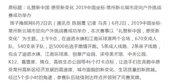 6月2日,“礼赞新中国,感受新变化”2019中国坐标·常州新北城市定向户外挑战赛成功举办,本次赛事由常州国家高新区(新北区)主办。校团委遴选了200余名志愿者为挑战赛提供志愿服务,并组织了300余名学生参加挑战赛。