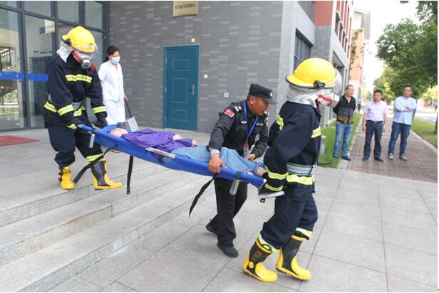 演练内容为实验室在出现明火突发事件时的快速反应及应急处理,模拟了3楼实验室发生明火、有人员被困的场景,演练了报警救援、警戒疏散、扑灭明火、救治伤员等过程。演练组织规范,人员疏散、灭火和搜救及时、有序。从出现火情,到组织各楼层师生疏散,最后救出被困人员仅用时15分钟左右。