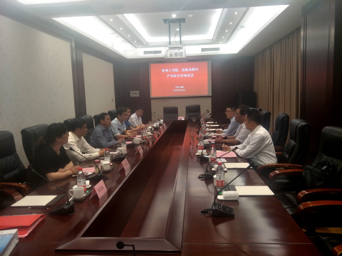 交流会上,高邮高新区工作委员会副书记顾吉林详细介绍了高邮高新区的产业布局、发展规划,以及支持产学研活动的便利条件和优惠政策。周全法介绍了我校产学研工作的基本情况。双方签订了产学研合作框架协议,并希望在产教融合基地建设、科研项目联合申报等方面开展深入合作。