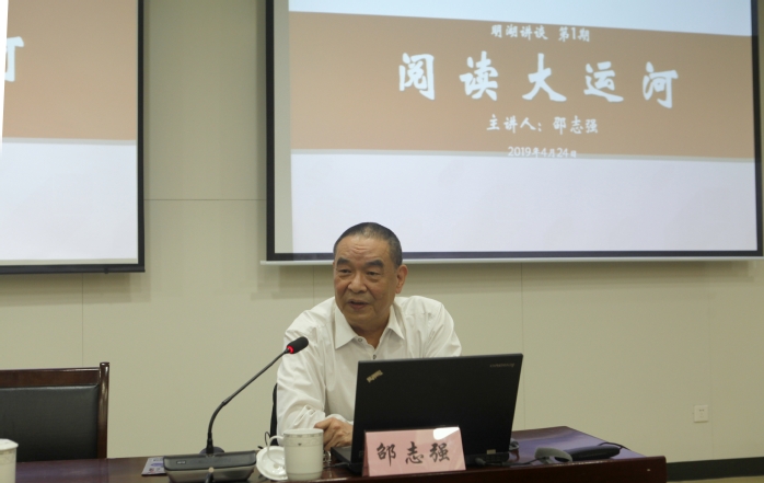 4月24日下午,“明湖讲谈”第1期——《阅读大运河》在辽河路校区图书馆一楼报告厅开讲。特邀常州市历史文化名城地方文史专家组组长、常州大运河文化带建设智库专家、常州市口述历史研究院院长邵志强主讲。