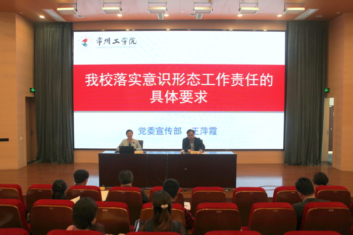 校党委常委、党委宣传部部长王萍霞立足我校意识形态工作责任的落实,对当前高校意识形态工作的风险点作了梳理,对我校意识形态工作的相关制度作了介绍。她指出,我校落实意识形态工作责任的具体要求,表现在把握正确政治方向的责任、加强课堂教学管理的责任、加强宣传思想阵地管理的责任、加强网络意识形态管理的责任等八个方面。围绕“责任”“风险”“管理”“能力”四个关键词,王萍霞具体分析了落实好意识形态工作责任制的关节点。