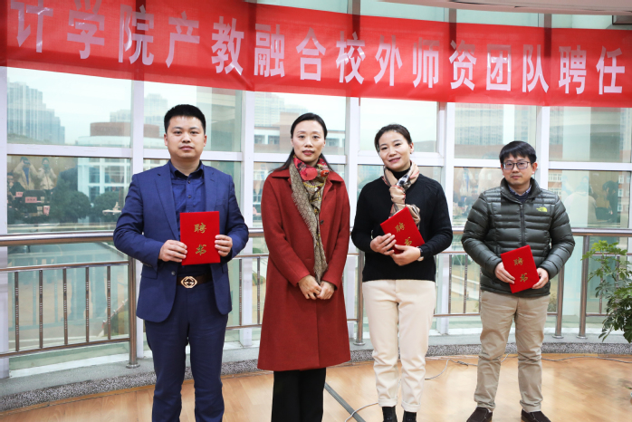 该院副院长赵可恒介绍了学院产教融合师资聘任情况;该院党委书记毛文杰宣读了外聘师资、校外实践教学基地名单;校、院参会领导分批次为受聘人员颁发聘书。