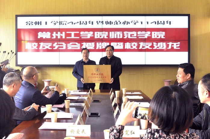 不忘初心话未来,齐心协力谋发展。百年师范再扬帆,砥砺前行铸辉煌。在学校喜迎建校42周年、师范办学114周年之际,4月24日,师范学院举行常州工学院师范学院校友联谊会(简称联谊会)授牌暨校友沙龙活动。副校长王传金为联谊会授牌并讲话。原校纪委书记、联谊会会长陈志伟及校友联谊会办公室主任王文、师范学院全体党政领导与各行各业的校友代表一起参加活动。