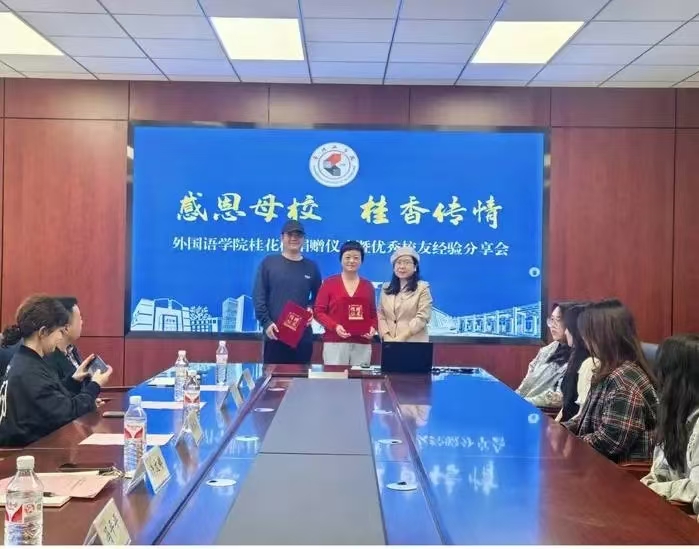 4月25日,1999级外贸英语专业优秀校友、常州元辰创威信息科技有限公司总经理朱水英重返校园,向母校捐赠16棵桂花树。外国语学院党委书记许文婷、副书记俞贤辉,校友联谊会办公室主任、校友联谊(总)会秘书长冯平平携师生代表共同参与,活动现场温馨且热烈。