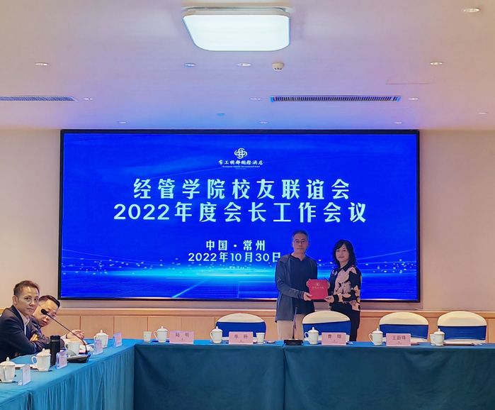 10月30日,经济与管理学院校友联谊会召开2022年度会长工作会议。校友联谊会会长常州天马集团有限公司董事长邵俊、常务副会长郭欣等近30位校友出席会议,学校校友办公室主任王文和经管学院党政主要领导应邀参加。会议由邵俊主持。