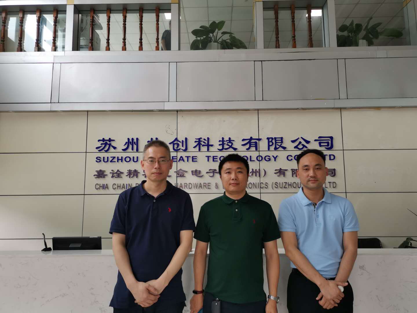 6月11日上午,校友联谊会办公室主任王文、副主任奚峰强走访校友企业苏州共创科技有限公司。公司总经理、我校05届校友、苏州校友分会主席沈志贤接待一行。